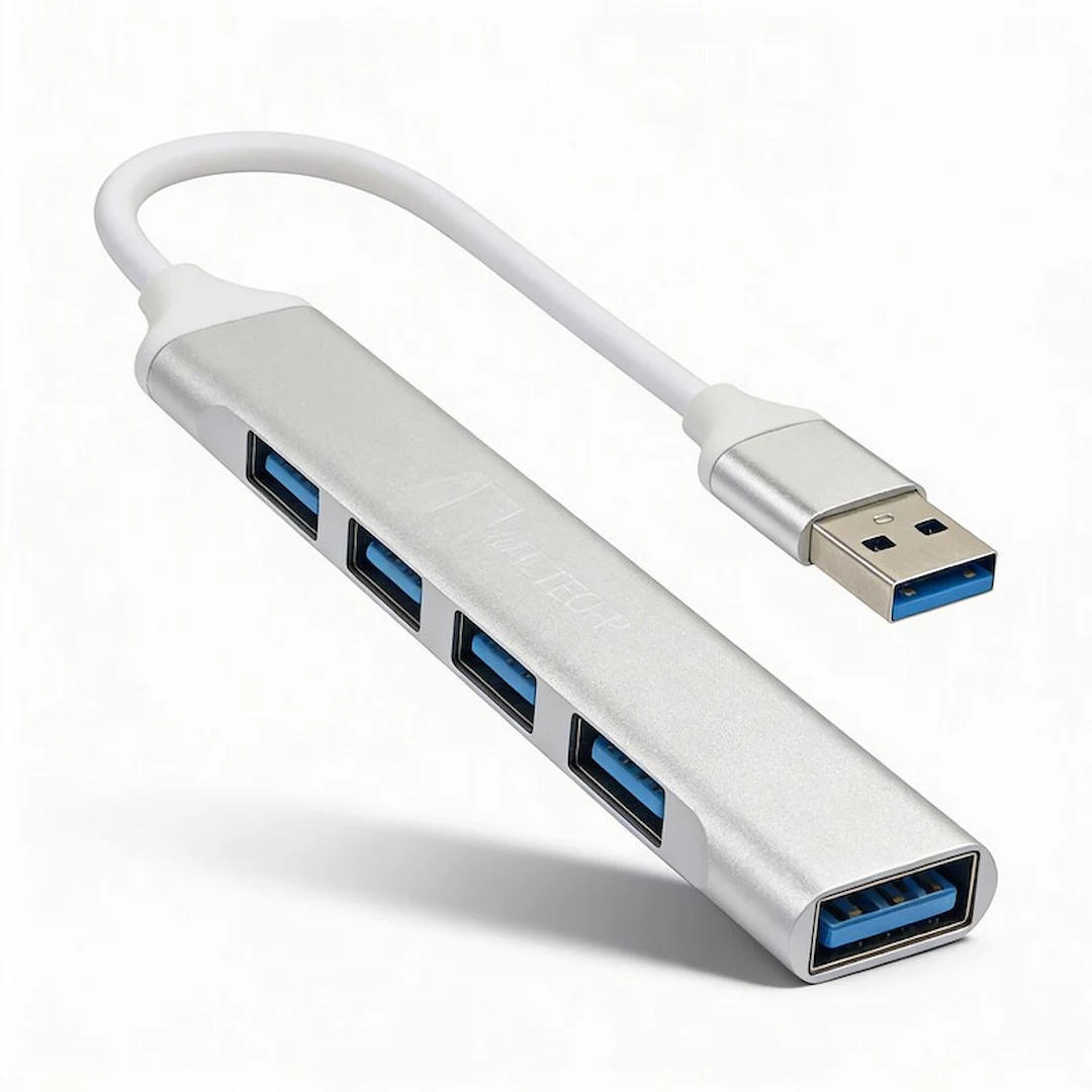 Su estructura compacta y ligera permite llevarlo a cualquier parte, convirtiéndose en una solución eficiente para entornos de estudio, trabajo o viajes. Los cuatro puertos USB ofrecen una conexión estable para periféricos compatibles, optimizando el espacio y evitando la acumulación de adaptadores adicionales.